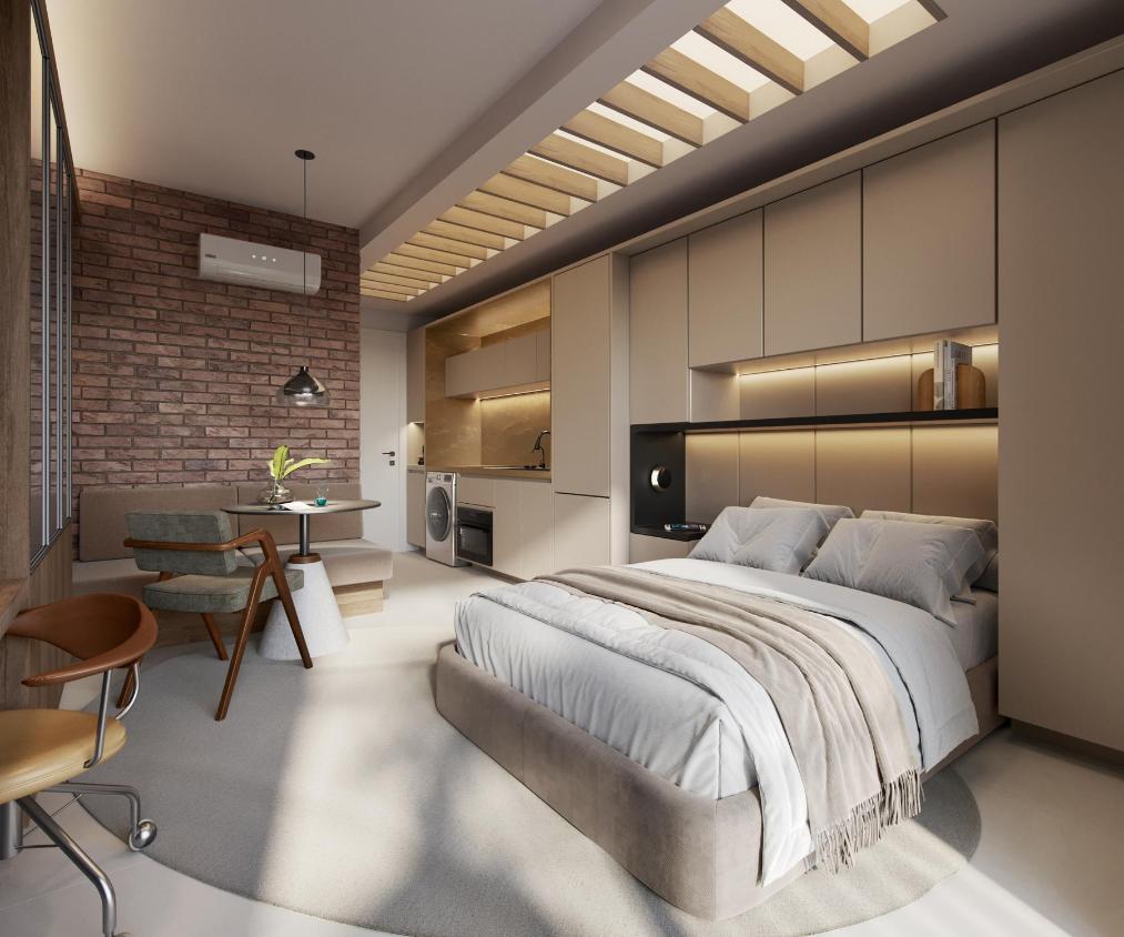 Com studios e apartamentos de 29 m² a 75 m², o empreendimento oferece plantas inteligentes, conforto, tecnologia e uma localização que traduz conveniência e valorização.