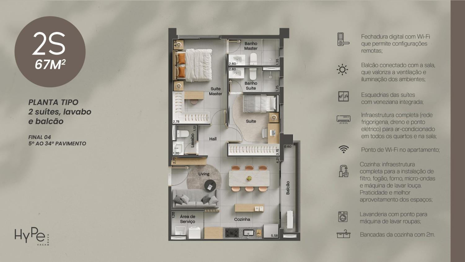 67m² (2 suítes + varanda balcão)