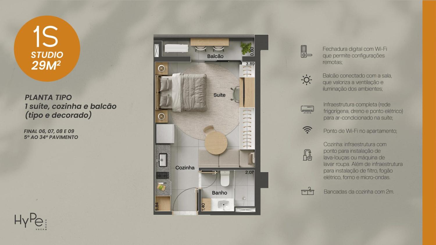 29m² (1 suíte + varanda balcão)