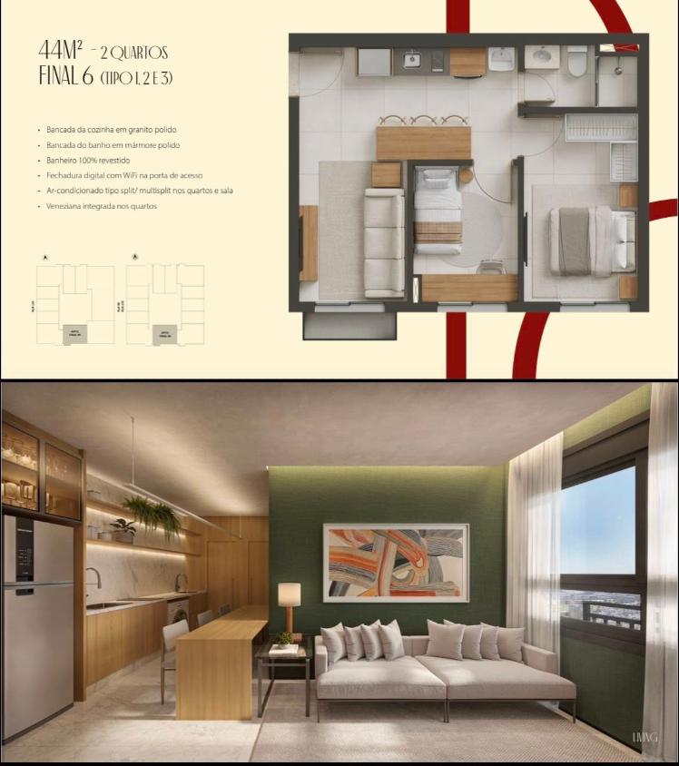 Apartamentos de 2 Quartos: Opções de 44m² a 51m².
