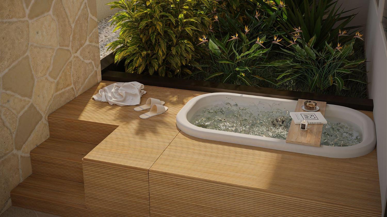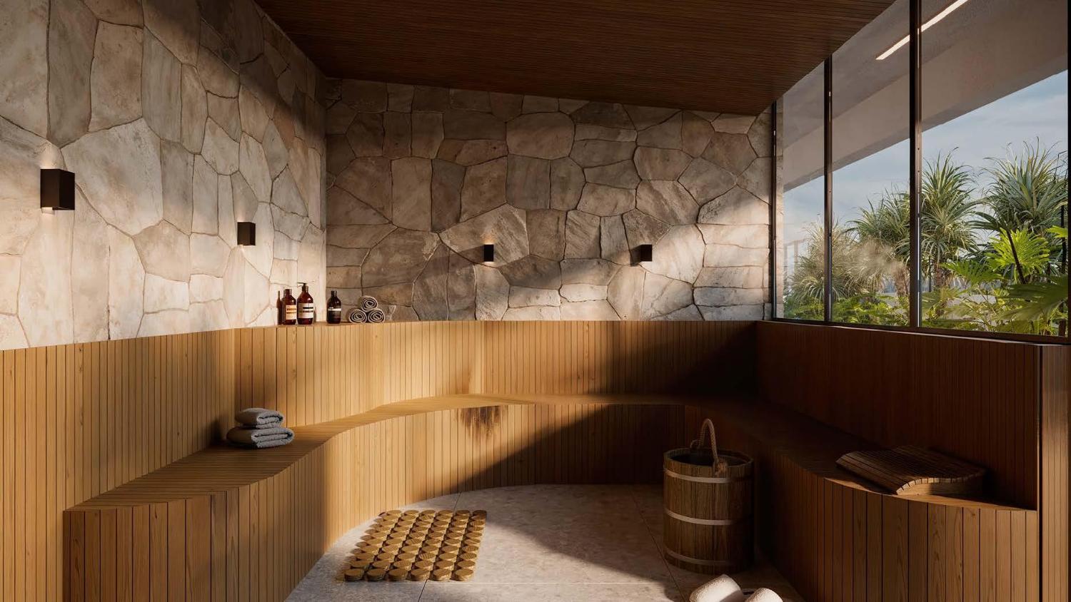 Para compor o acesso principal, a infraestrutura possui lobby de pé-direito triplo e praças de convivência. Além disso, o lazer do condomínio é completo, com piscinas adulto e infantil, sauna, banheira de gelo, sala de massagem, espaço fitness e fitness outdoor.