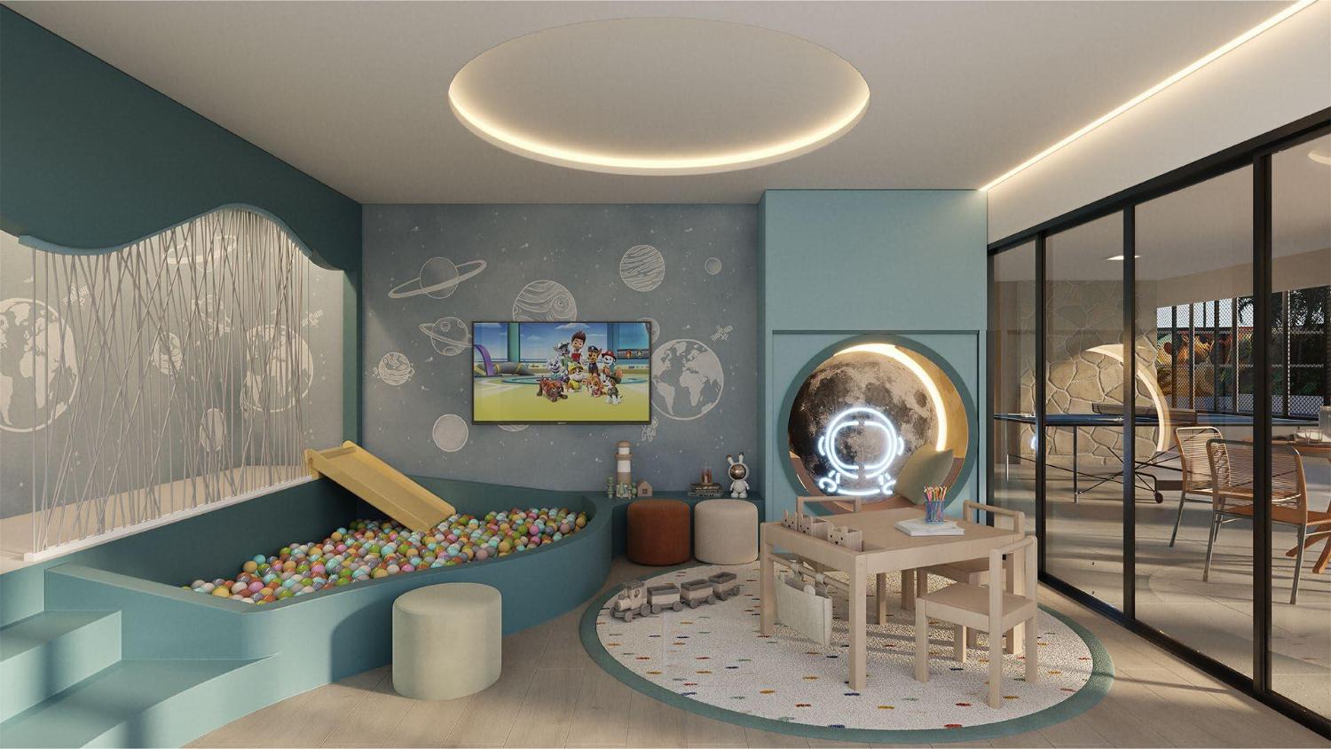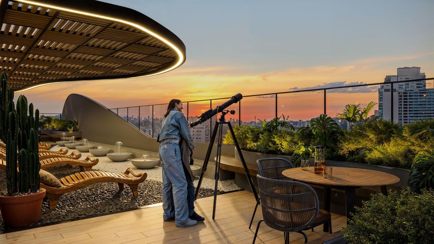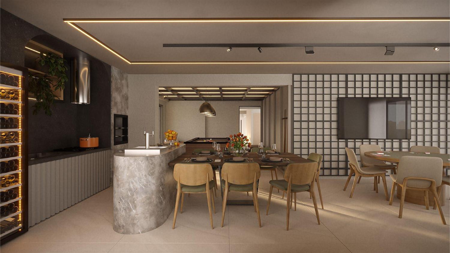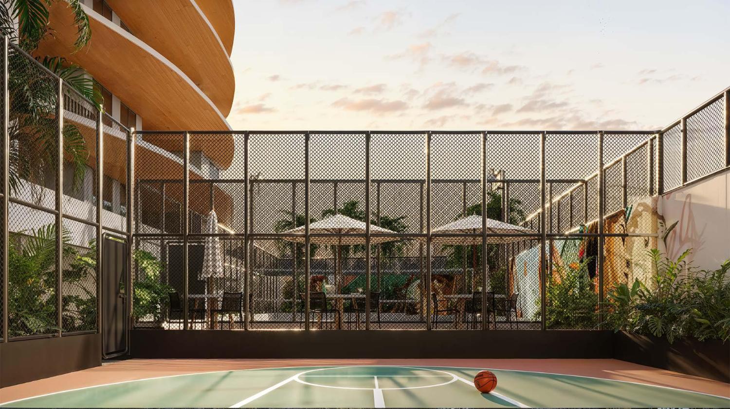Outras áreas comuns incluem quadra de beach tennis, street ball, espaço gourmet, salão de festas, adega, coworking, sala de reunião, mercadinho, playground, brinquedoteca e varanda de jogos, além do rooftop com sky bar, observatório e espaço para caminhadas.