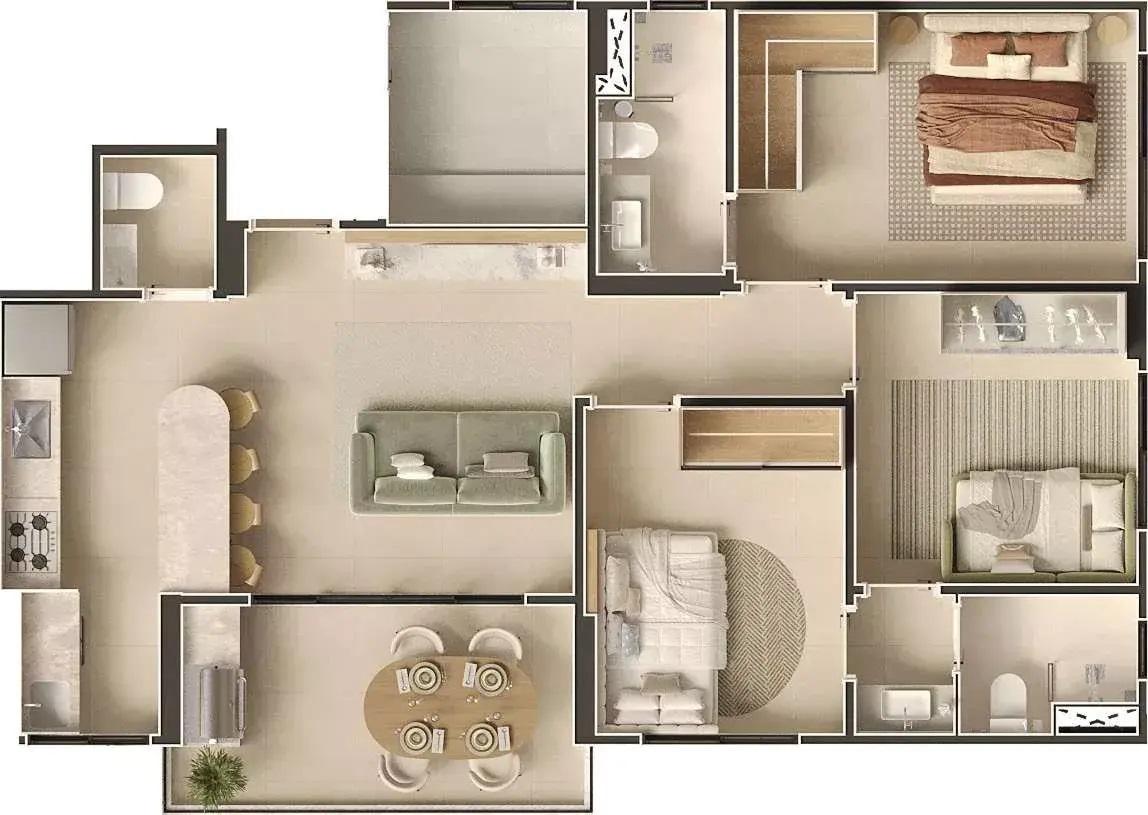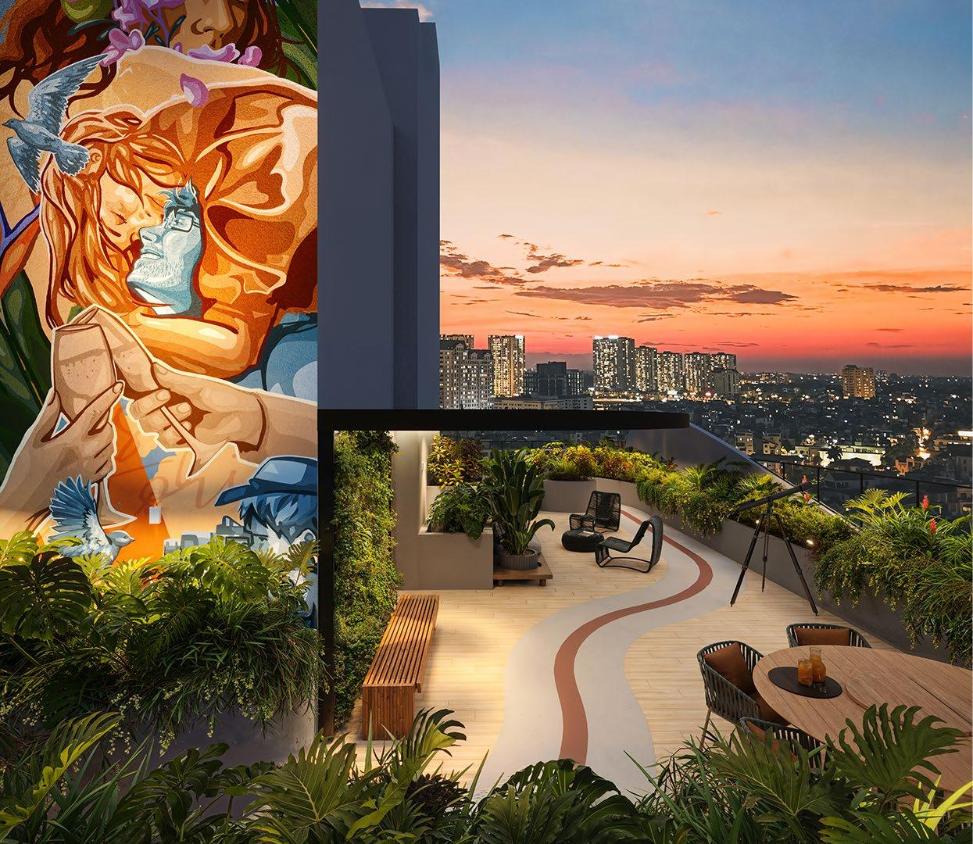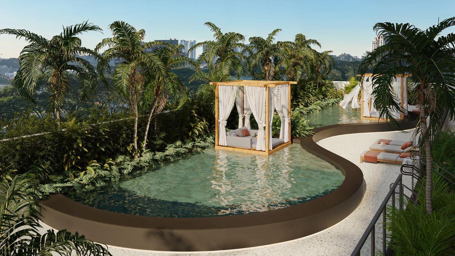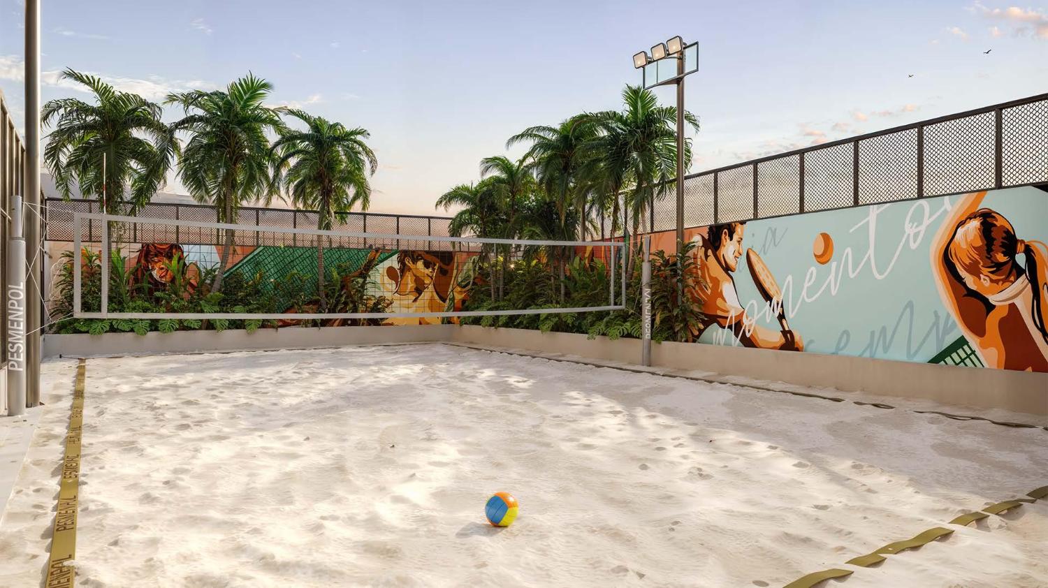Outras áreas comuns incluem quadra de beach tennis, street ball, espaço gourmet, salão de festas, adega, coworking, sala de reunião, mercadinho, playground, brinquedoteca e varanda de jogos, além do rooftop com sky bar, observatório e espaço para caminhadas.