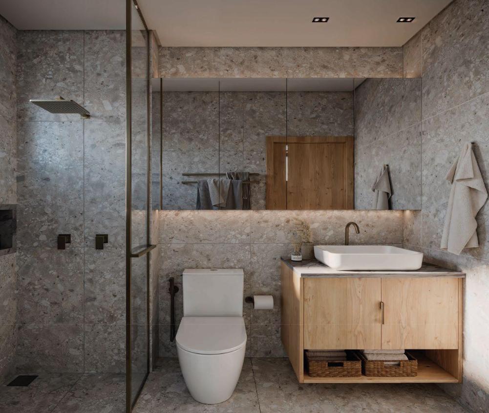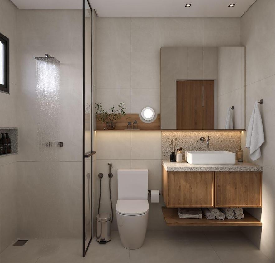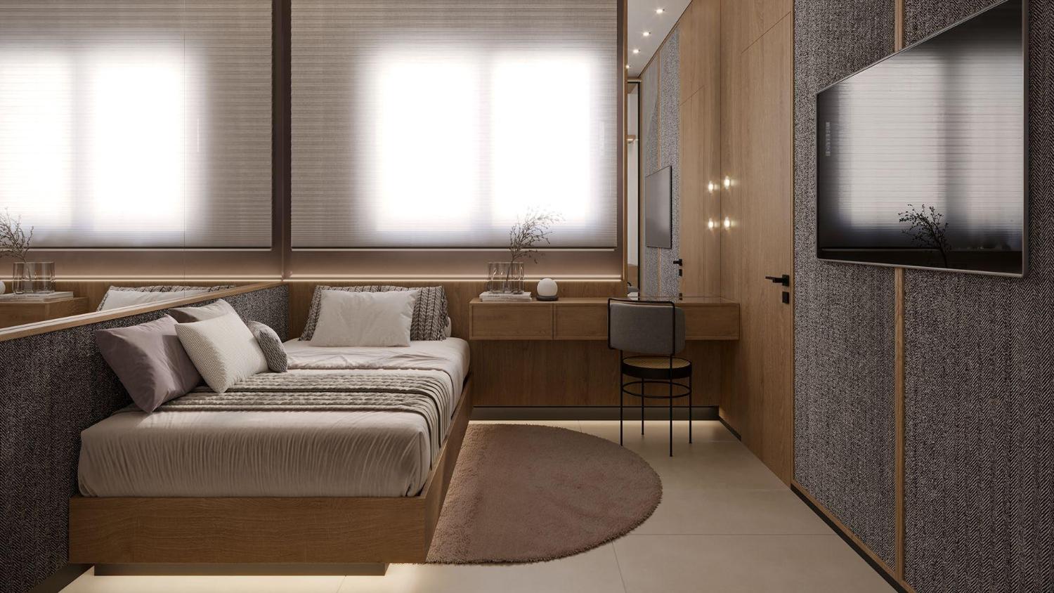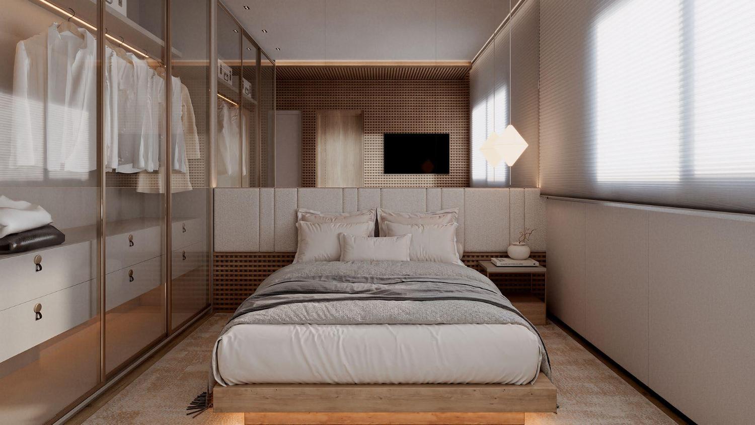 Os apartamentos contam com automação de iluminação, climatização e persianas, tomadas USB-C, fechadura digital, bacia sanitária inteligente e sistema de reconhecimento facial para acesso. Todos os banheiros possuem janelas, otimizando o conforto térmico.